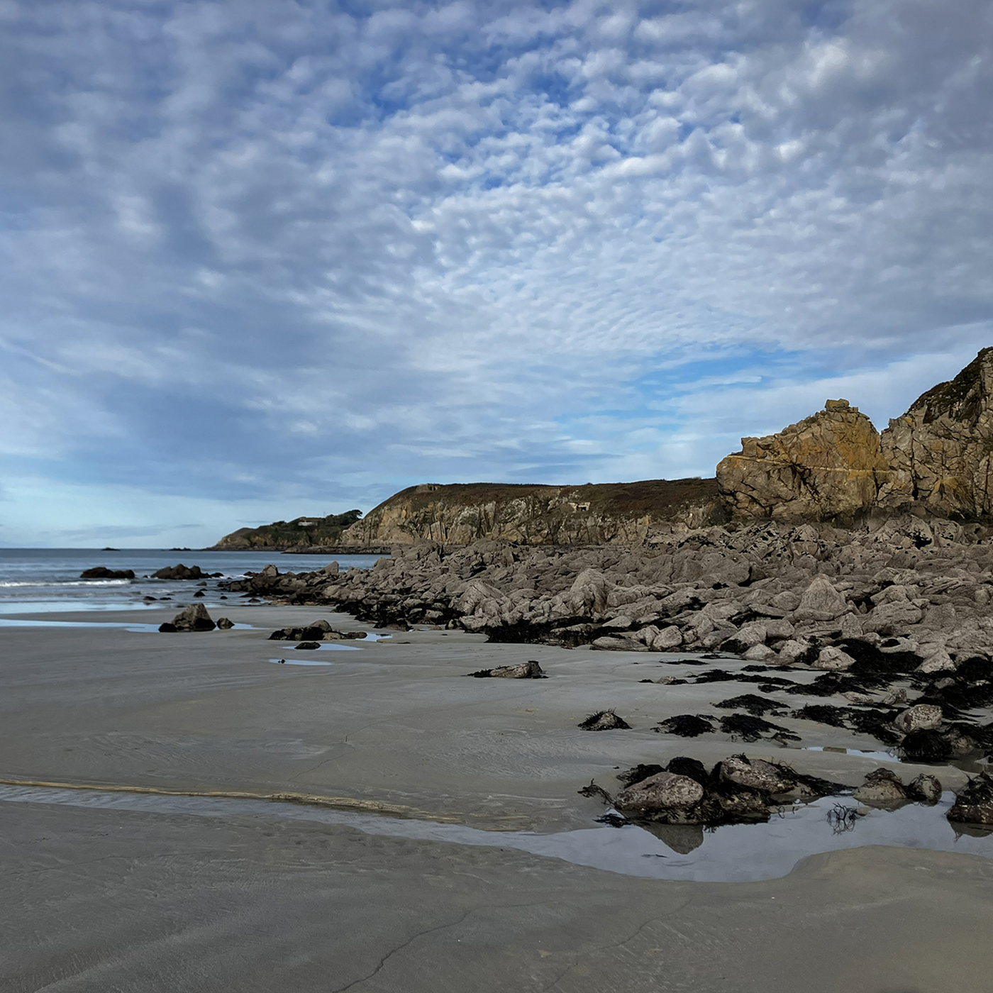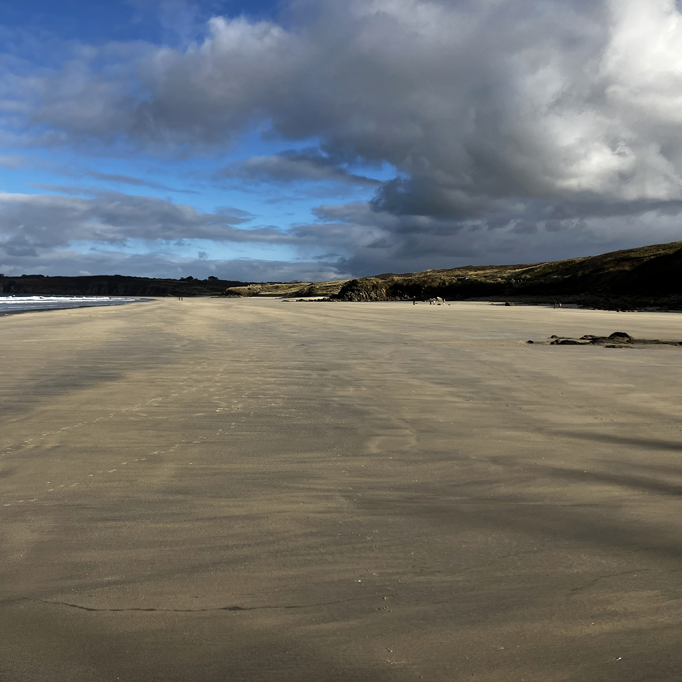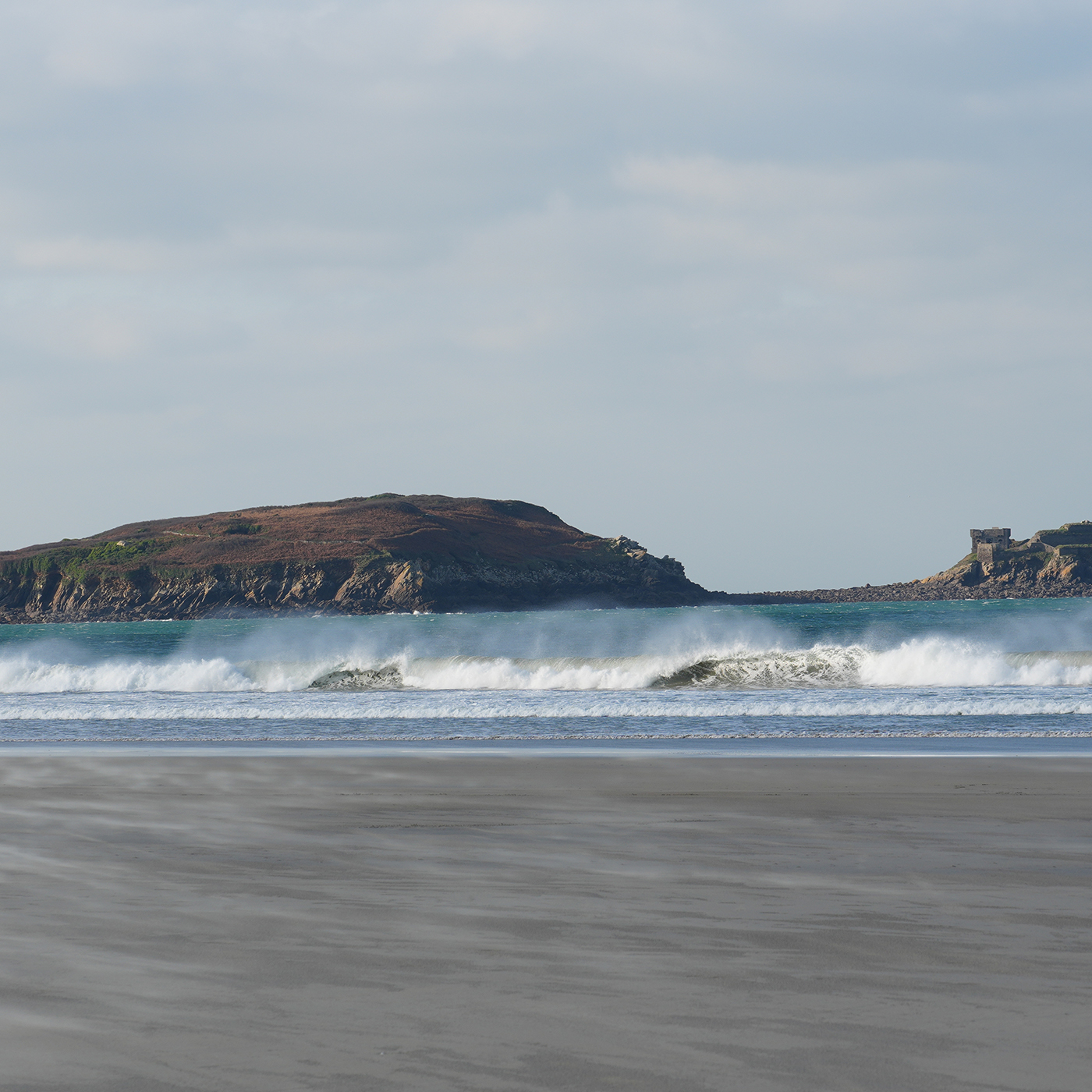 Der Strand „Les Blancs Sablons“, „Gwendraezh“ auf Bretonisch, liegt nahe der Kleinstadt Le Conquet in Finistère in der Bretagne und ist bei Surfern jeder Art überaus beliebt wegen der kräftigen Winde und dem damit einhergehenden Wellengang. Die gesamte Gegend liegt auf einer keilförmigen Gesteinsformation aus Granit, die nicht nur weit landeinwärts, sondern auch bis zu 7000 Meter in die Tiefe reicht: Ehemalige Berge, fast so hoch wie der Himalaya, die nicht abgetragen wurden, sondern nach und nach in der Tiefe der weichen Erdschichten verschwanden.